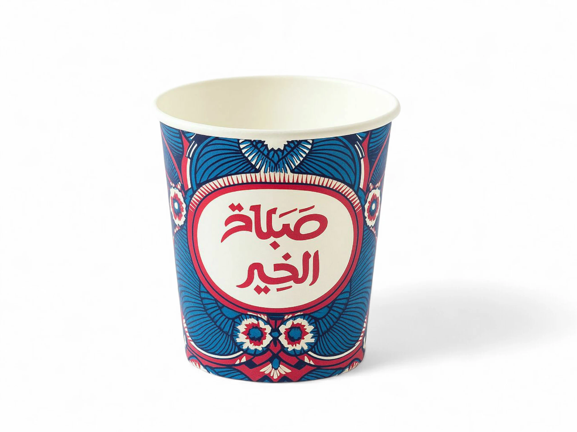 اكواب ورقية مطبوعة بعبارة صباح الخير