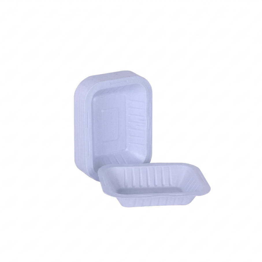 صحون بلاستيك بيضاء مستطيلة مقاس (رقم نصف / 0.5) صغيرة الحجم ومناسبة للضيافة، الحلويات، أو المقبلات.