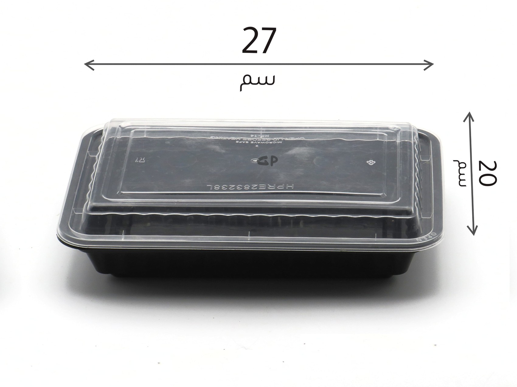 صحون مستطيل اسود بغطاء شفاف مقاس 58 اونز