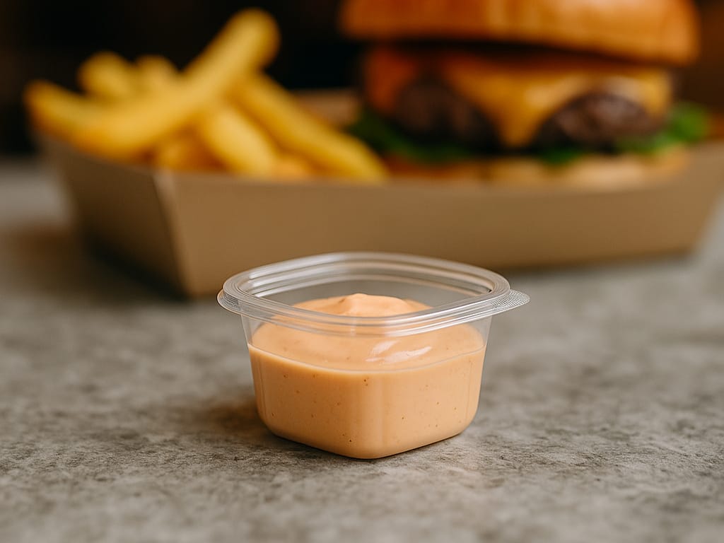 علب بلاستيك شفافة  تتميز بتصميم “الكبس” المحكم الذي يضمن عدم التسريب، مما يجعلها الخيار الأول لتعبئة الكاتشب، المايونيز، الصوصات
